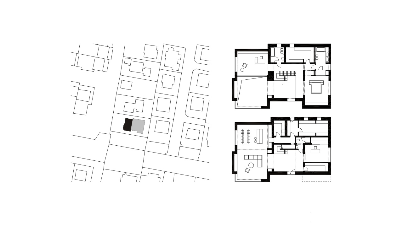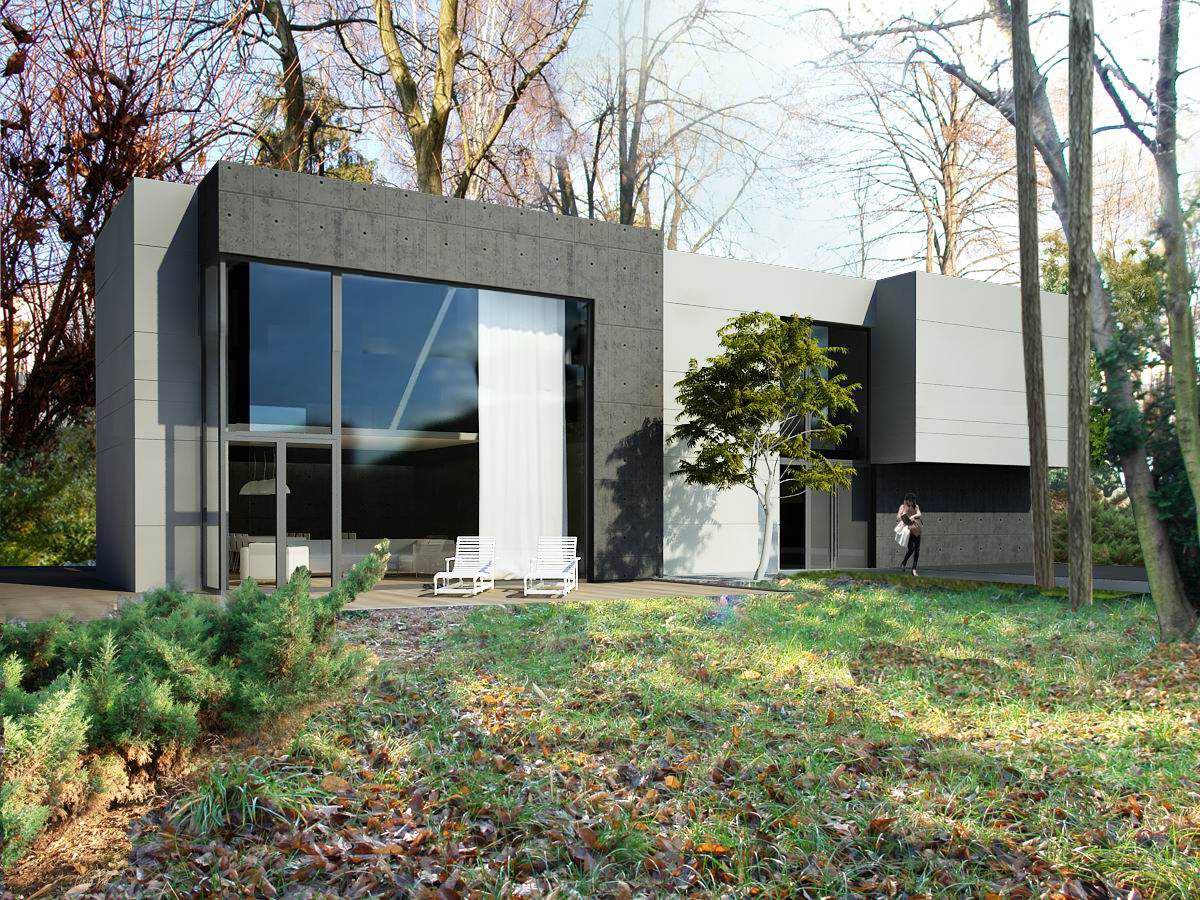 Projekt przebudowy i rozbudowy modernistycznej willi powstał na zlecenie nowego właściciela budynku, który nabył go ze względu na prestiżową lokalizację. Zadanie projektowe postawione przed projektantem nie było łatwe: budynek miał być nowoczesny, przestrzenny, nietypowy, otwarty na ogród. Z drugiej strony istniejąca struktura była stosunkowo słabo doświetlona, z niskim nieużytkowym przyziemiem, powierzchnia za mała. Projekt zakłada prawie dwukrotne powiększenie kubatury – rozbudowę o część dzienną, dwupoziomowy salon, kuchnię, jadalnię, pracownię + fitness. W części istniejącej kubatury znajdzie się strefa wejściowa (również dwupoziomowa), strefa zapleczowa, magazynowa, techniczna. Na piętrze, sypialnie, łazienki, galeria antresoli. Podczas projektowania tego domu szczególna uwagę zwracaliśmy na funkcję reprezentacyjną, którą ma pełnić. Atrakcją domu jest przeszklenie o wysokości 5.5m łączące salon z ogrodem. To najwyższa szyba zespolona w Katowicach – przyjechała z Estonii.